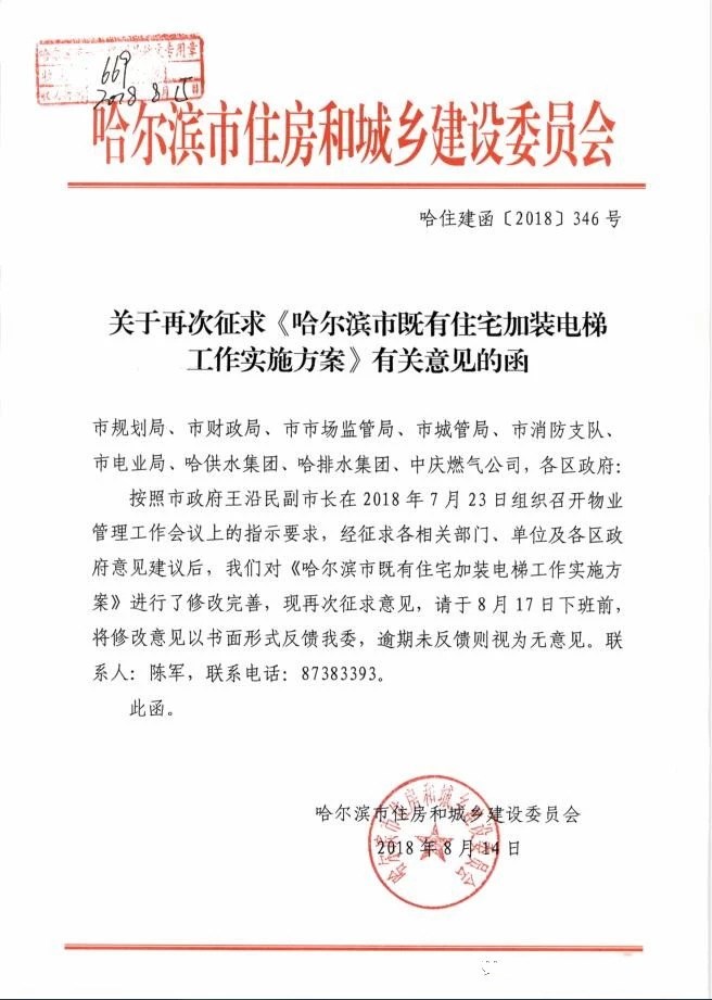 本站获悉,我省哈尔滨市日前由哈尔滨市住房和城乡建设委员会正式颁布了《哈尔滨市既有住宅加装ABTY.COM工作实施方案》,凡是符合要求的住宅楼,加装ABTY.COM政府每台补助15万元,如有加装意愿的单元抓紧时间申报。